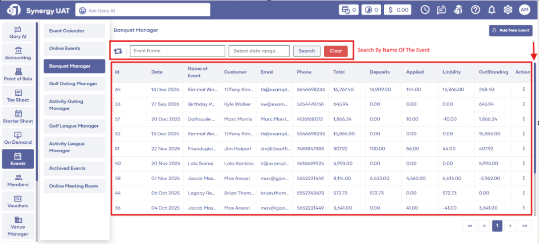 Step 3: Under Action, click on the three small dots, followed by View/Edit. The system will generate an Edit Banquets Manager pop-up window.