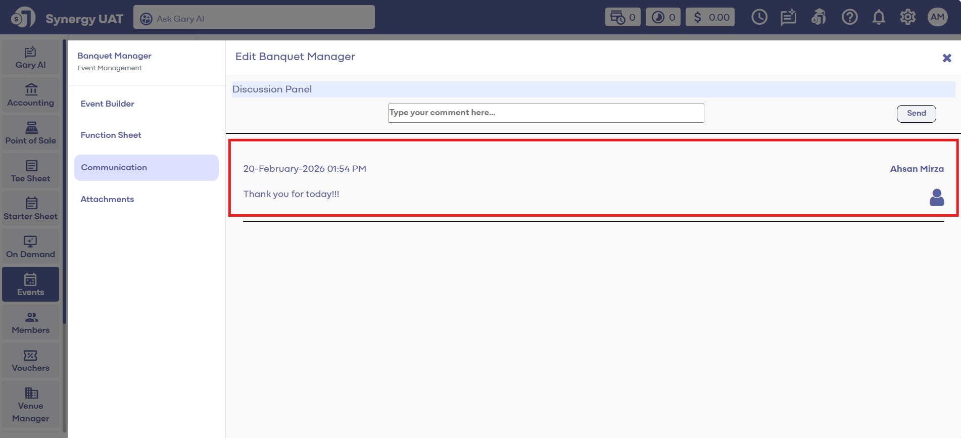 Step 4: Click on the COMMUNICATION tab and write the intended message in the text field and hit Send.