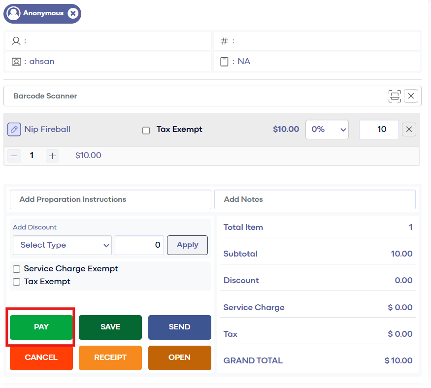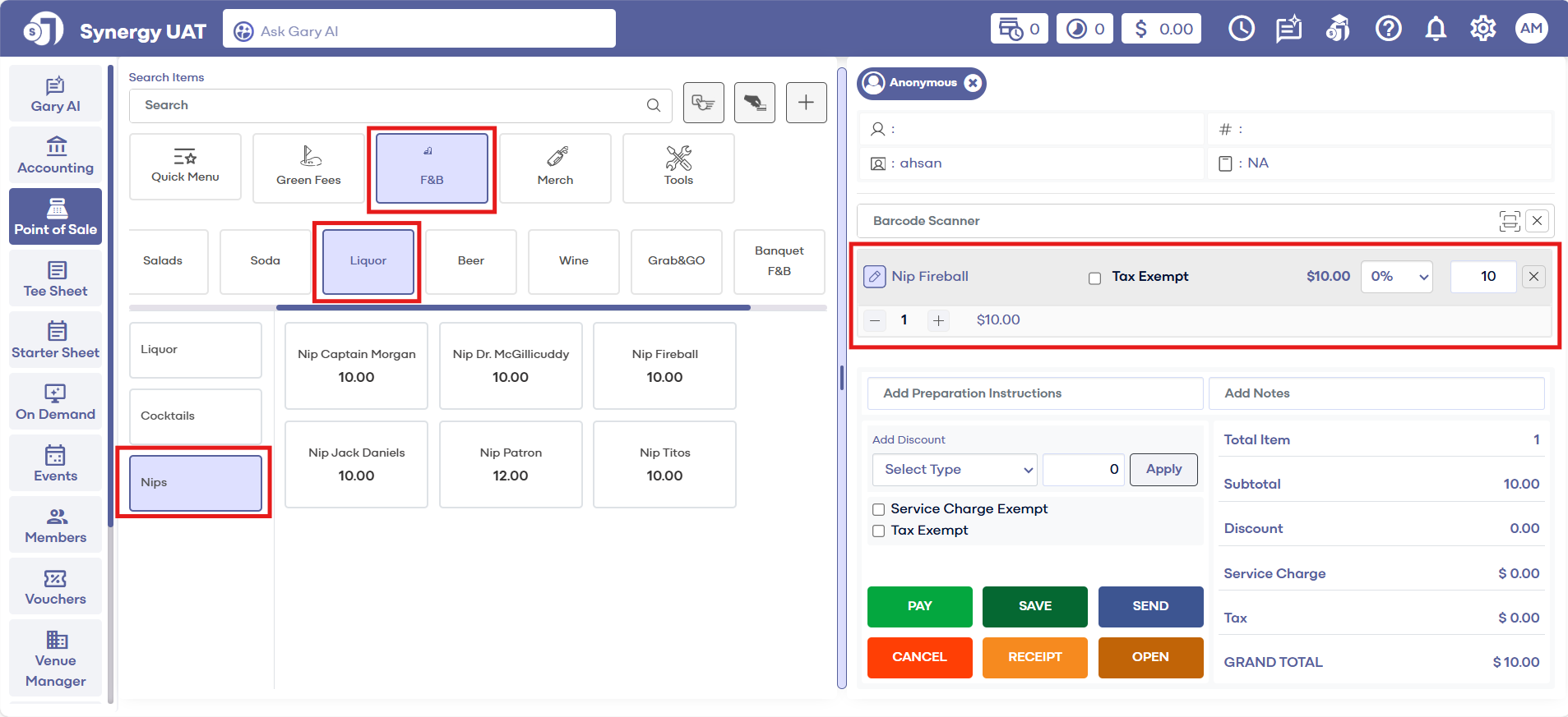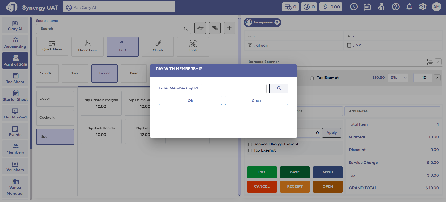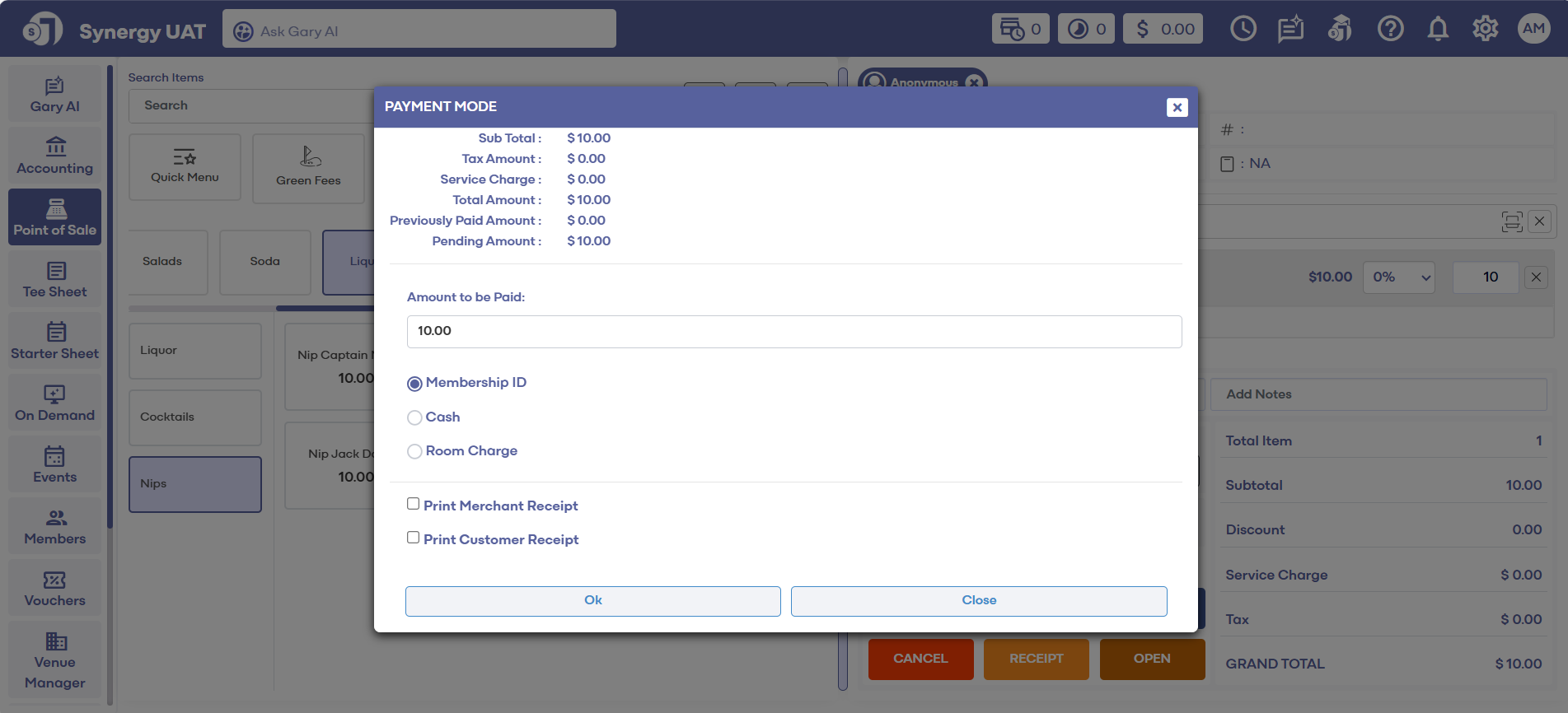 Step 2: Add items that you want to purchase and to be added to the event's invoice. Then, select Pay, followed by Event Charge.