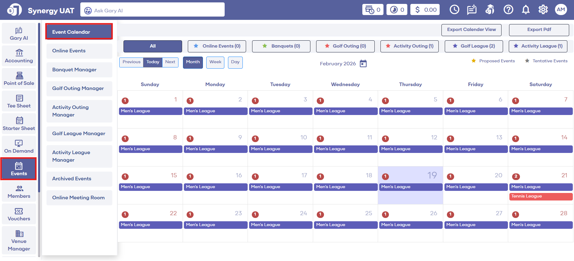 Step 1: Select the EVENTS module from the module navigation menu.