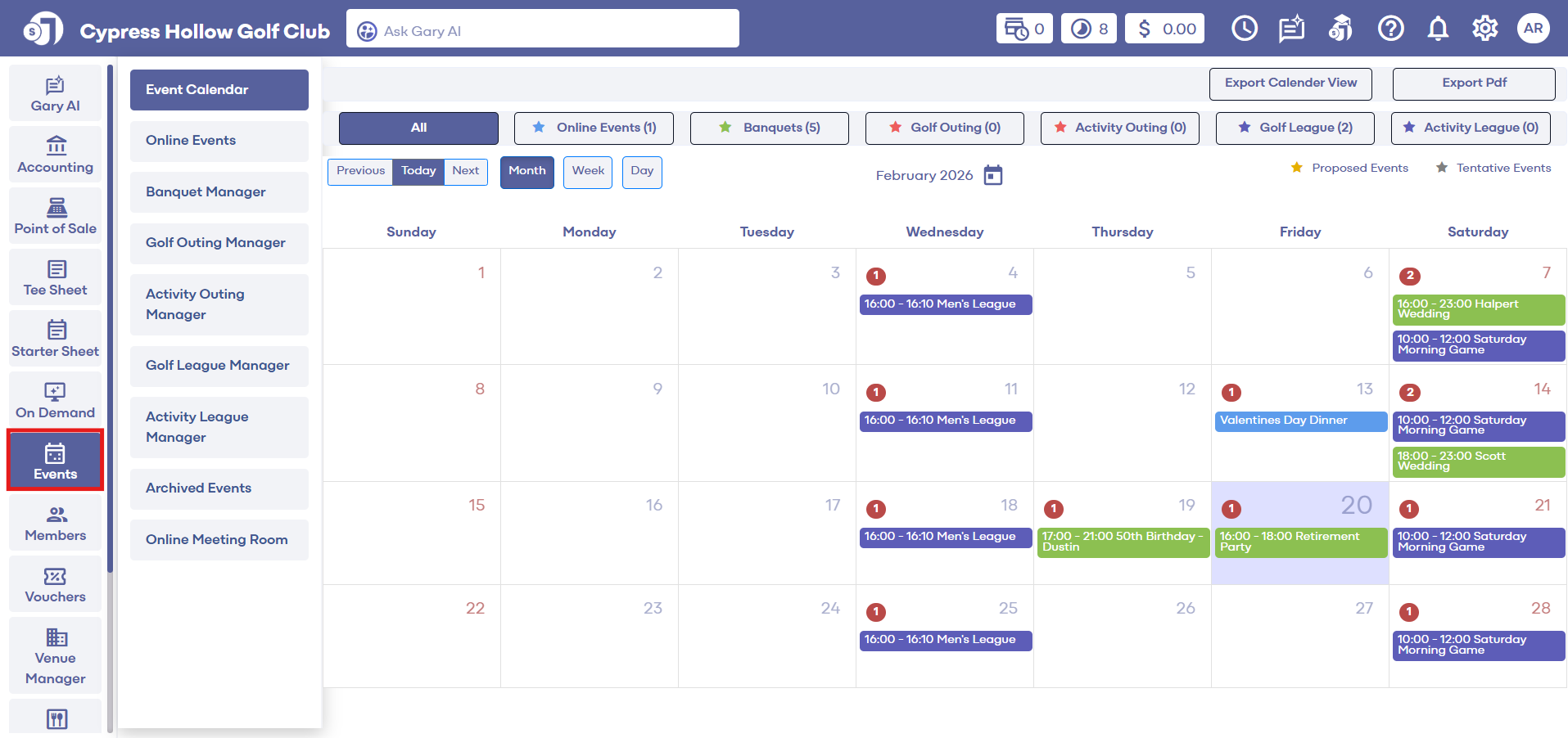 Each status will reflect a different color on the Event Calendar for easier identification.