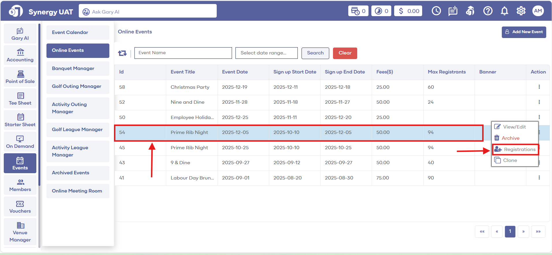 Step 1: Select the EVENTS module from the module navigation menu and then click on Online Event in the left-hand menu.