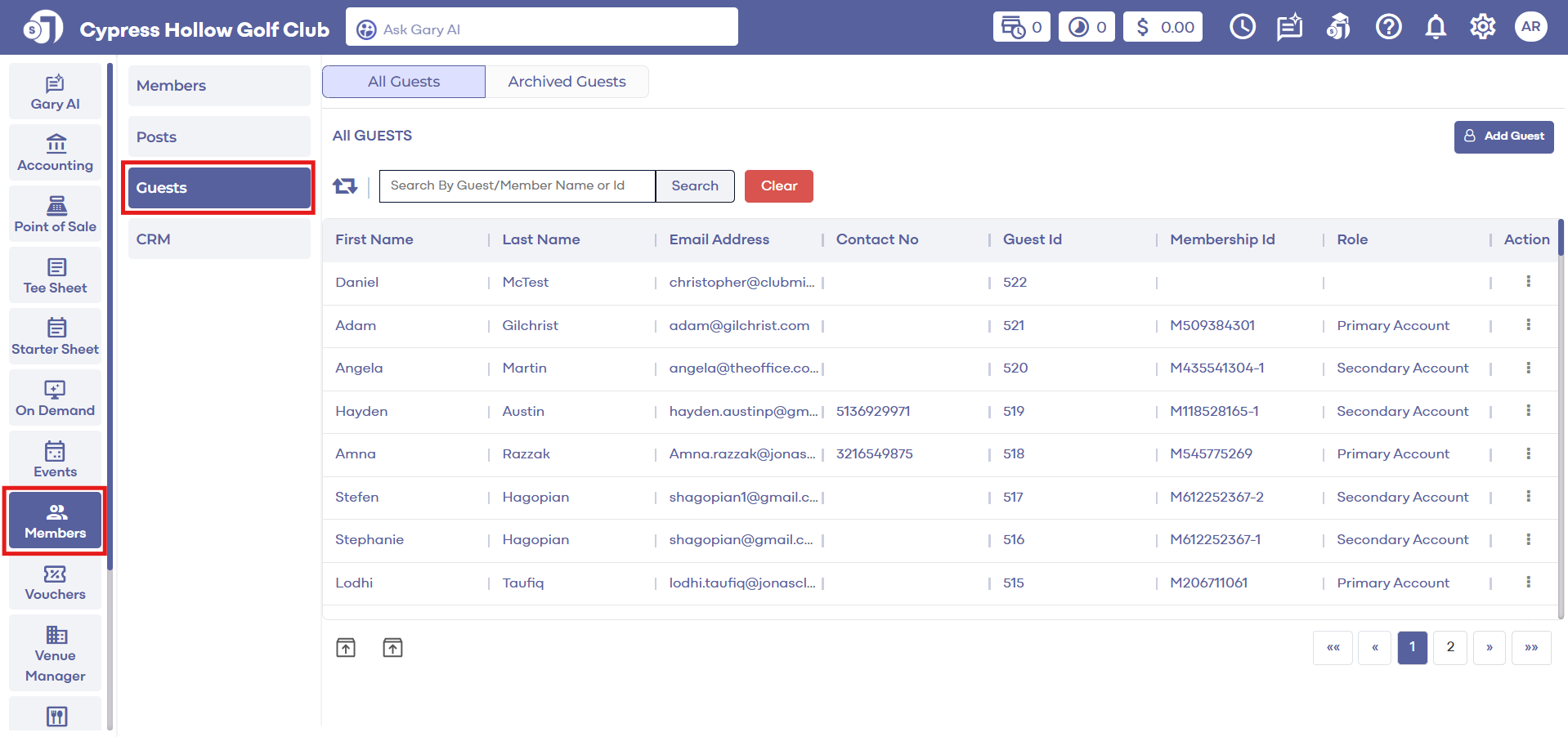 Step 1: Select the 'Members' module from the module navigation menu. Click 'guests' in the left-hand menu. The system will open an 'ALL guests' window where all guests can be viewed.