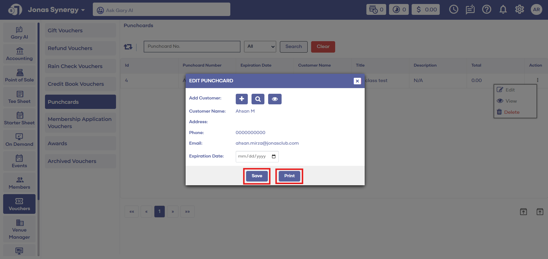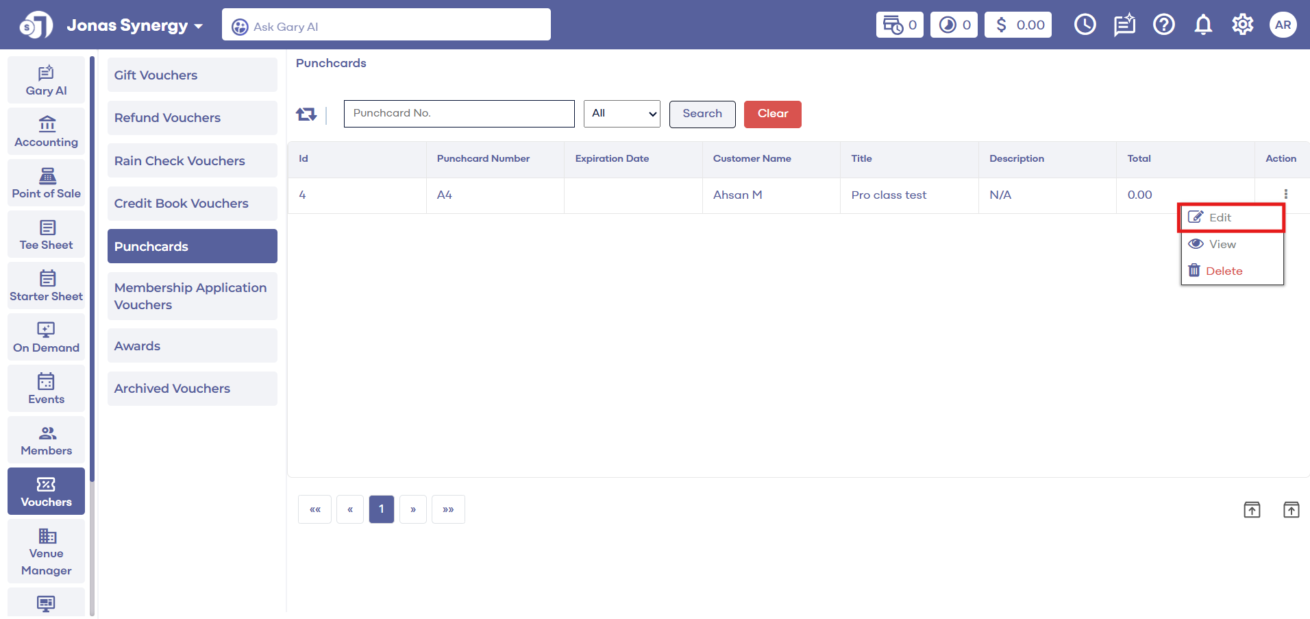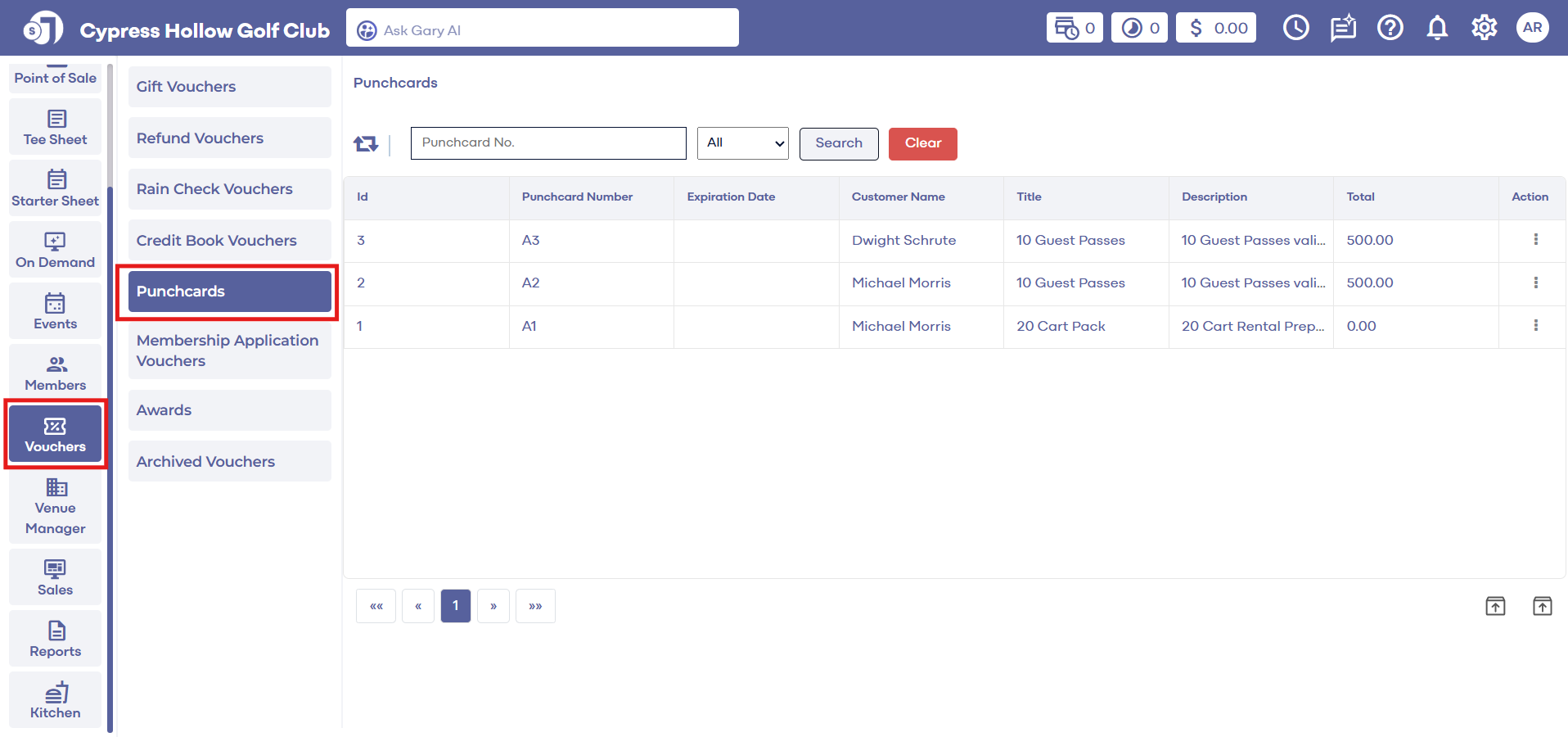 Step 1: Click on the Vouchers module along the left bar. Then click on Punch Cards from the left-hand menu.