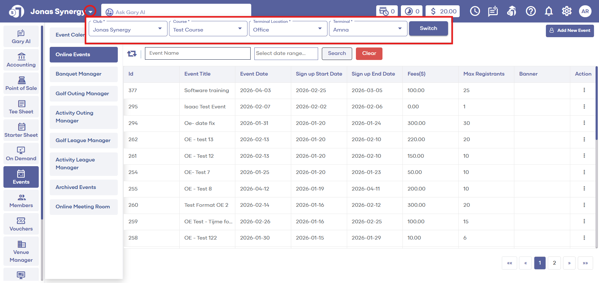 Global View - The ability to switch between Club/Course/Terminal Location/Terminal.