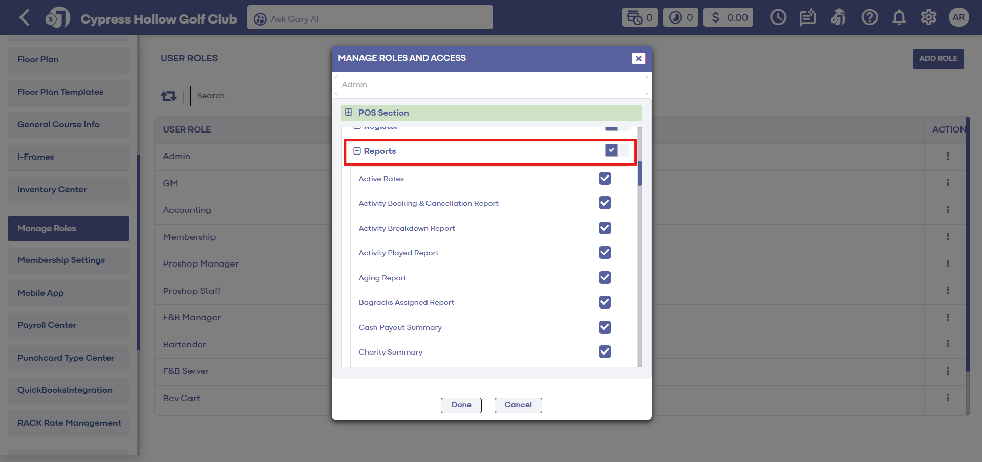 Reservation - Toggle on/off for this user role to have access.